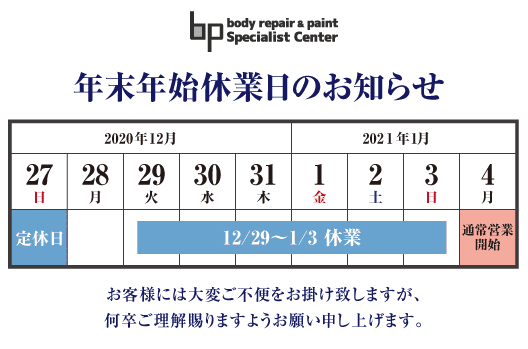 BP集中センターでは下記の通り、年末年始の休業とさせて頂きます。